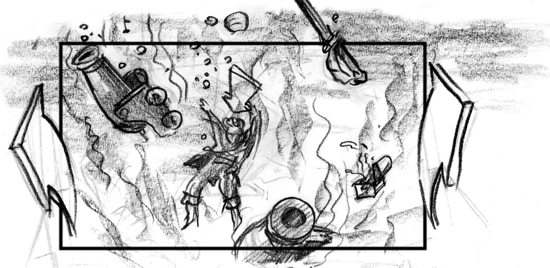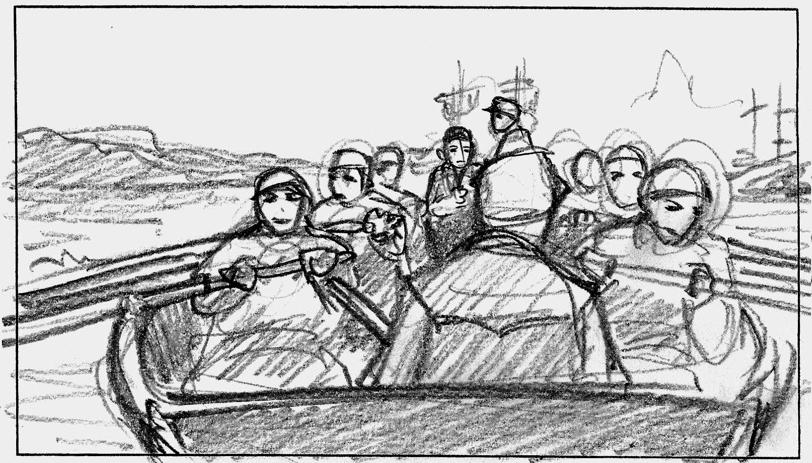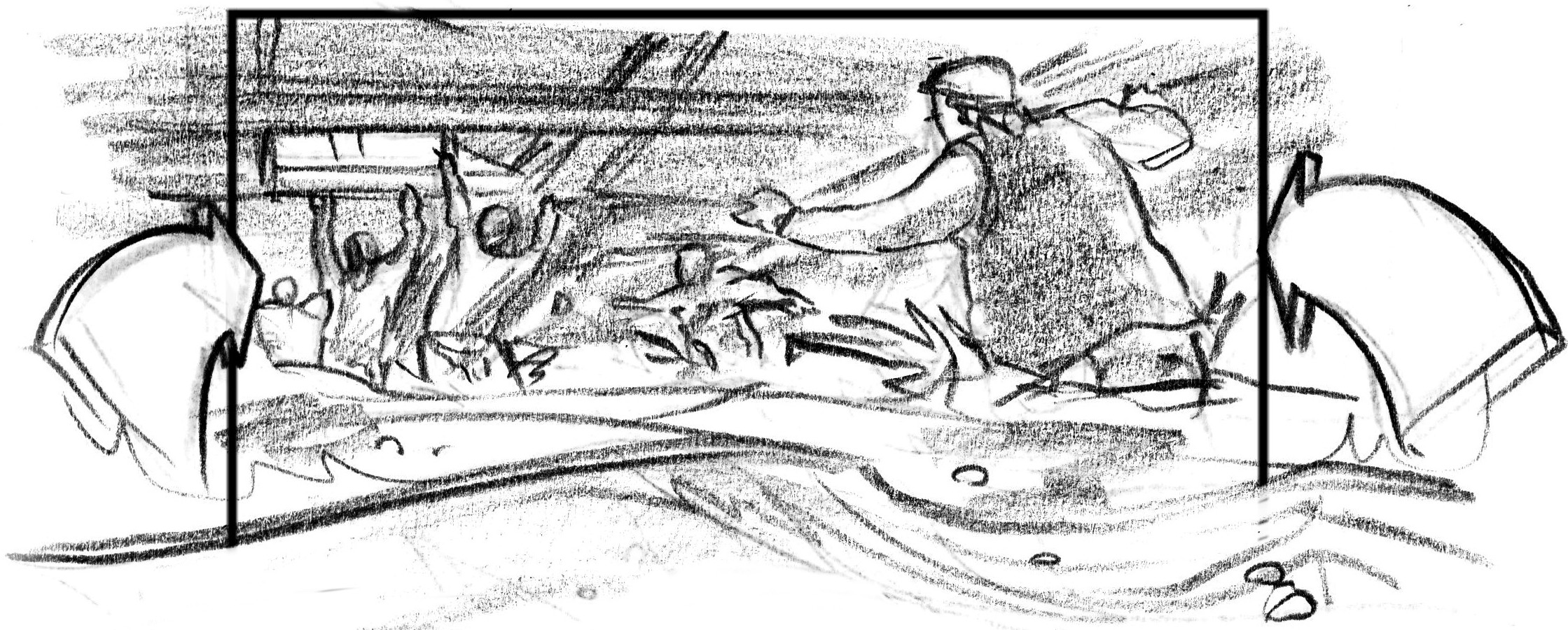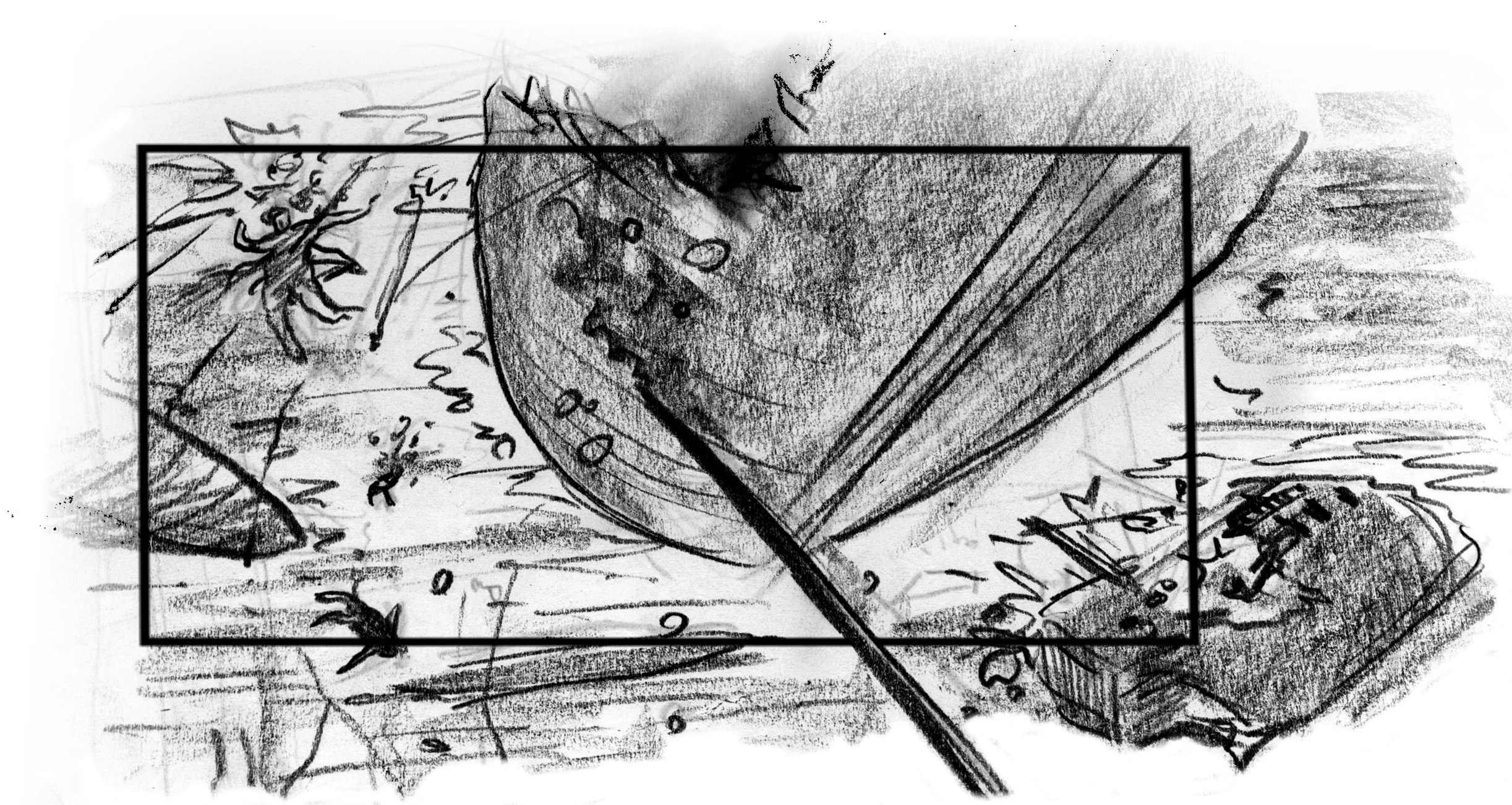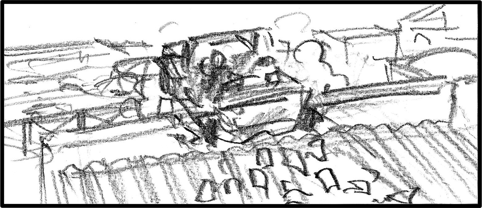 Pencil on paper is a very quick way to get storyboards drawn. This style works well when working out a narrative sequence in a face to face storyboarding session with a director.