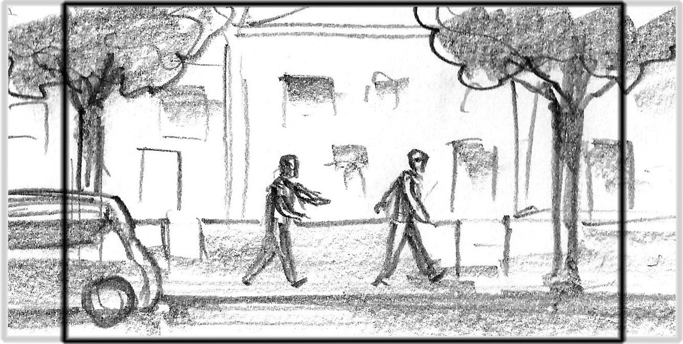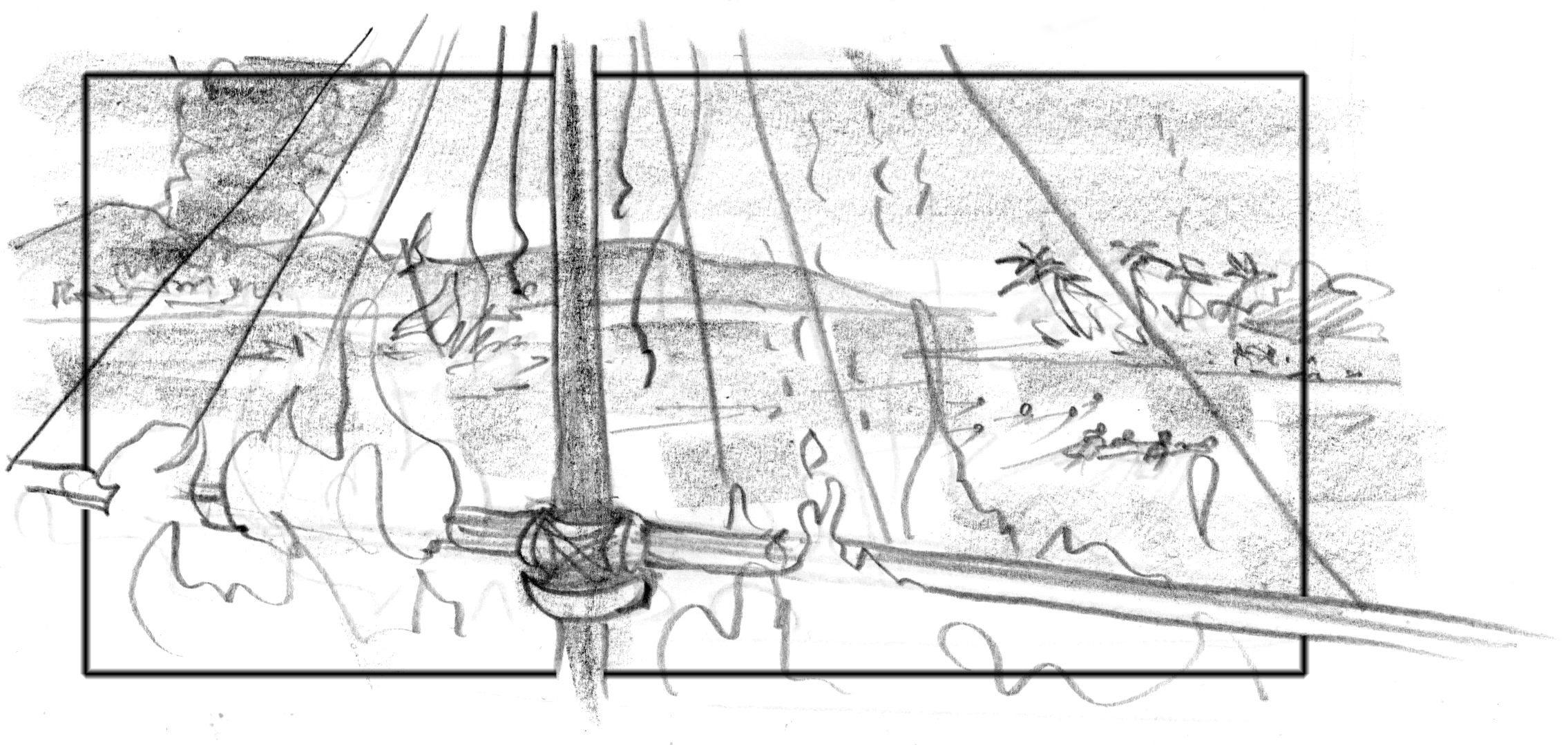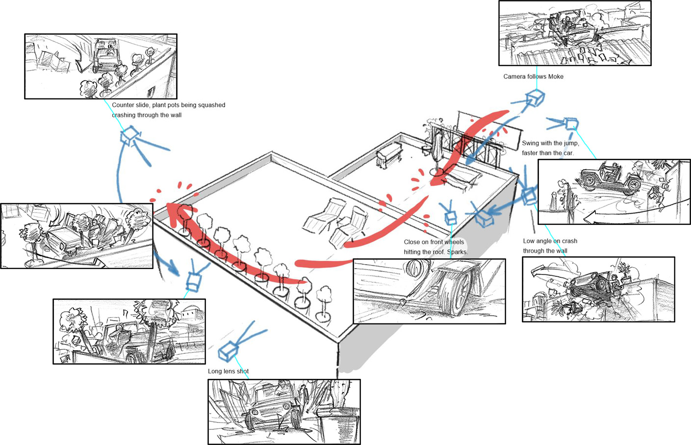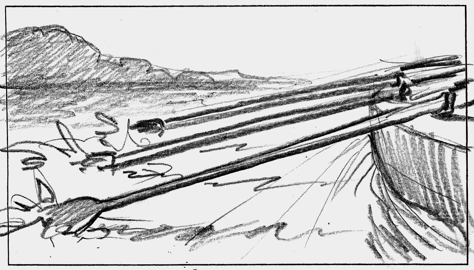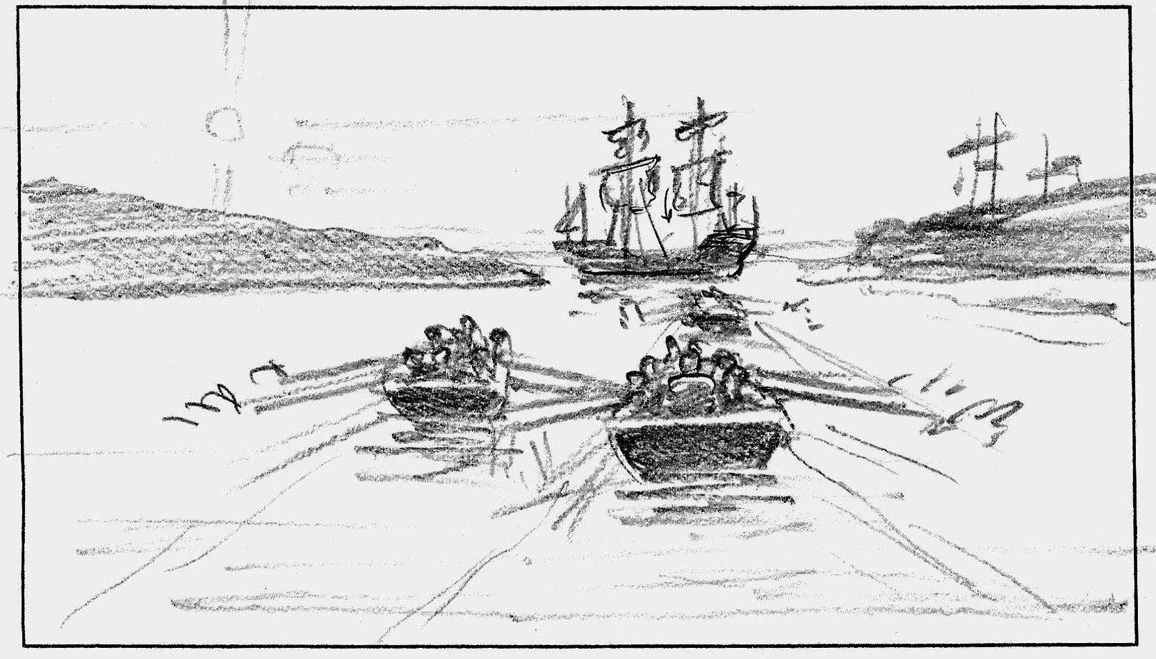 Pencil on paper is a very quick way to get storyboards drawn. This style works well when working out a narrative sequence in a face to face storyboarding session with a director.